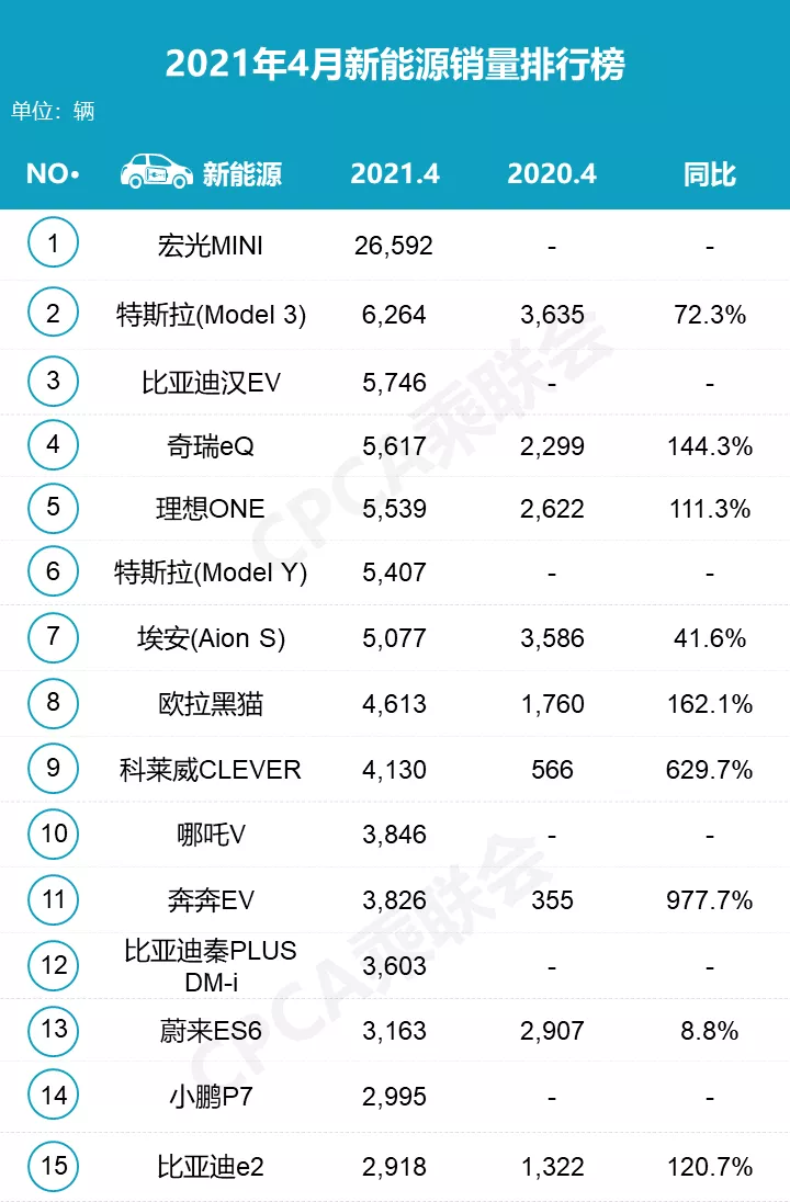 在2021年4月新能源销量榜中,位列前三的分别为宏光MINI EV、特斯拉Model 3以及比亚迪汉EV,原本在3月位列第三名的特斯拉Model Y已跌落至第六名,这很显然也是受到了负面的影响。随着时间推移,Model 3的排名也极有可能下滑。