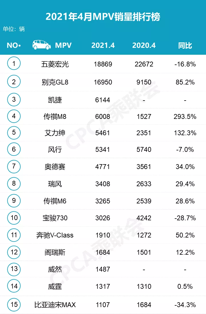 MPV销量榜:传祺M8愈发坚挺