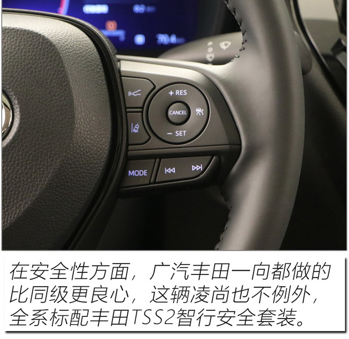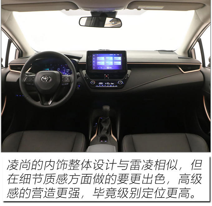 所谓“A+”级轿车,顾名思义就是在各方面实力都要比普通的A级轿车更优秀、更实用、更高级。而凌尚就是基于丰田TNGA架构下打造的一款全新的A+级家用轿车,定位于雷凌与凯美瑞之间。因此其车身尺寸比雷凌更大,在雷凌的尺寸基础上车长增加了55mm,轴距增加了50mm。内饰品质则向凯美瑞看齐,使用了大量的皮质缝线工艺,标配了诸多的智能安全科技,并搭载了B级车级别的动力系统。