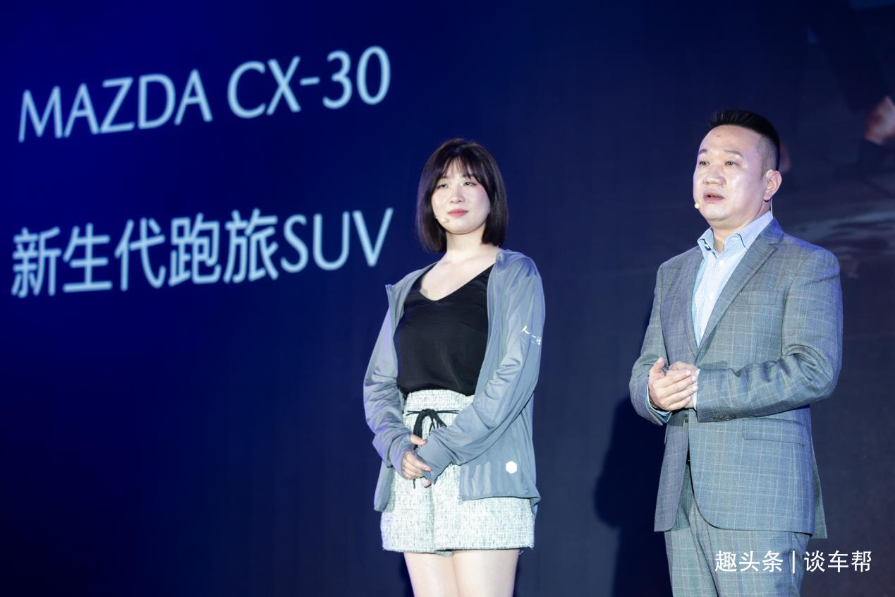 [长安马自达汽车销售分公司执行副总经理吴旭曦与MAZDA CX-30女性用户代表共同发布新车价格]