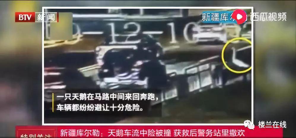 12月10日11时30分许,一名出租车司机行驶到库尔勒市库尉北路与新城北路交会处时,发现路中间有一只天鹅,过往车辆纷纷避让,为避免天鹅受伤,出租车司机立即报警。