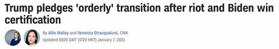 CNN称,特朗普这份声明是公开承认他将离任。不过,特朗普并未表明自己是否会出席拜登的就职典礼。