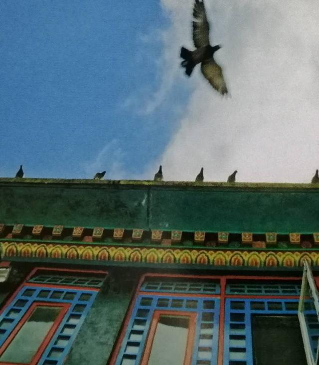 ▲空中的鸟1/125秒的曝光时间对于拍摄大多数运动瞬间状态都已足够,但是要拍摄飞翔在寺院上空的鸽子却不够。