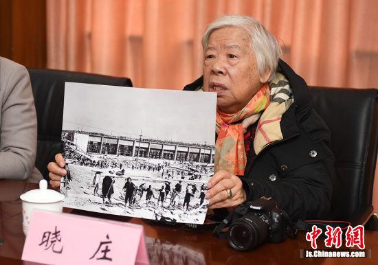 晓庄老师在回忆1952年建闸施工中拍摄时的人和事。 桂宝林 摄