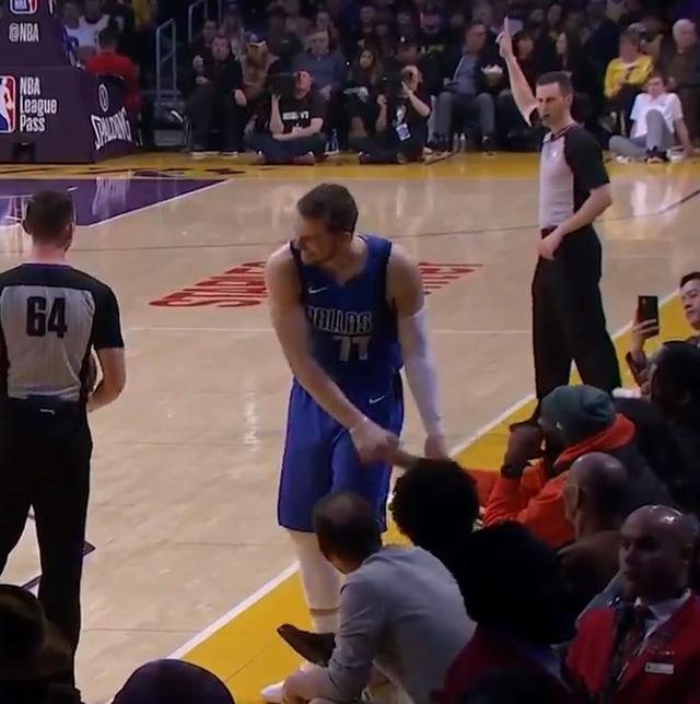 比赛中还发生了件很有意思的事。一位湖人队的“球迷”向东契奇用他的母语——斯洛文尼亚语说了太多“垃圾话”,因此东契奇转过身,这才发现这位“球迷”竟是湖人名宿科比。