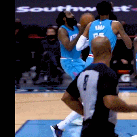 有一句说一句,能拿下这场球,军功章大半得给哈登。前期放权给墙哥持球,打着打着比分不断落后,此时哈登站出来了。