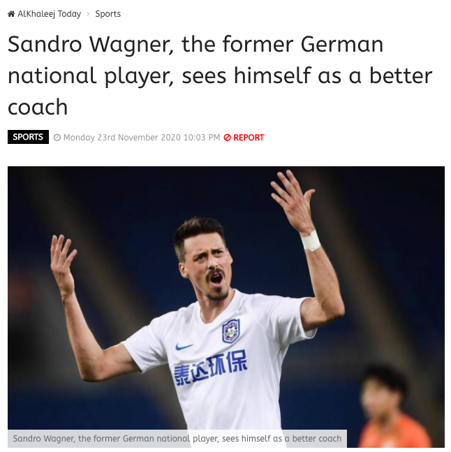 《阿尔克哈雷日报》:前德国国家队球员瓦格纳,认为他能成为一名更好的教练。