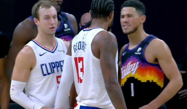 北京时间1月4日,快船与太阳比赛的第四节,保罗-乔治和德文-布克在场上发生激烈的口角,差点动手。
