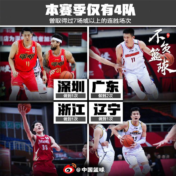 深圳112-103击败广州,豪取7连胜。他们成为本赛季第四支取得7场或更多连胜的球队。前三支正是目前积分榜前三名的辽宁、广东和浙江队。凭借这波连胜,深圳队战绩达到13胜11负,排名第八。