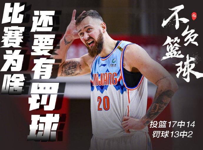 新疆男篮的罚球成为最大的软肋,本场比赛因为罚球与生涯新高擦肩而过的周琦,当然也有一定的责任,截至本场比赛,周琦本赛季的罚球表现为182罚109中、罚球命中率为59.9%,但本场比赛13罚仅2中、本赛季123罚49中的莫泰尤纳斯(罚球命中率跌至39.8%),显然更是“功不可没”——本场比赛,莫泰尤纳斯17投14中。