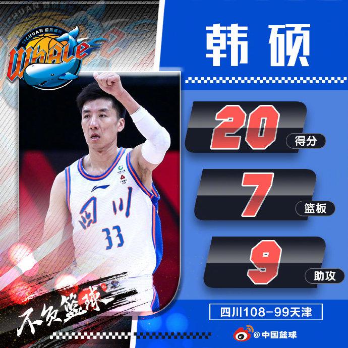 下半场的韩硕,虽然在进攻中的手感还是一般,但他的8次助攻却给四川男篮带来了足够多的支持——朱松玮完成的全场比赛最震撼的扣篮,同样来自韩硕的助攻。由于他上半场还送出1次助攻,9次助攻也因此刷新了个人的赛季新高——之前为6次助攻。