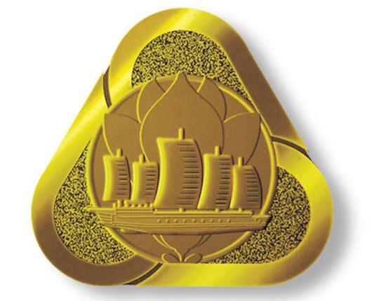 上海市市标是以市花白玉兰、沙船和螺旋桨三者组成的三角形图案。三角图形似轮船的螺旋桨,象征着上海是一座不断前进的城市;图案中心扬帆出海的沙船,是上海港最古老的船舶,象征着上海是一个历史悠久的港口城市;沙船的背景是迎着早春盛开的白玉兰,展示了城市的勃勃生机。
