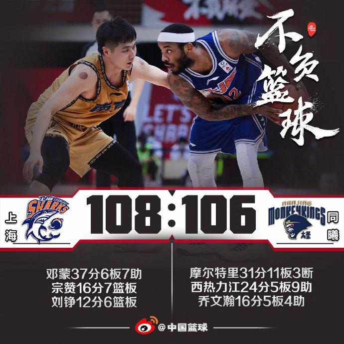 上海:宗赞16分7板、罗汉琛10分、弗雷戴特8分、邓蒙37分5板7助、刘铮12分。