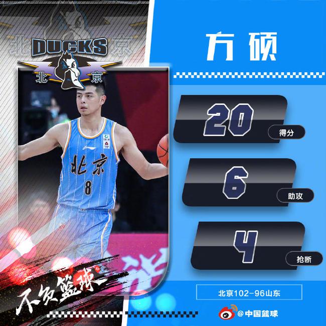 方硕末节一度连得7分,引领一波12-0的攻势,率领就此反超比分,最终取胜。整个第四节他贡献8分2抢断。