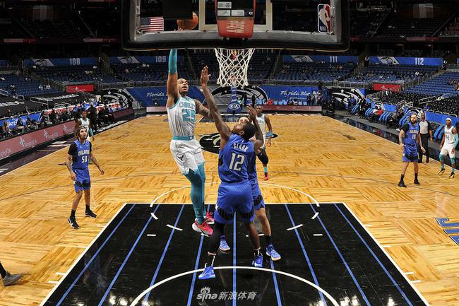 时间还有8.7秒,黄蜂关键一攻到了海沃德手中,他冷静地运了几下后,变向突破过了福尼尔,魔术队友前来补防,但也被海沃德晃过,在比赛还有0.7秒时,海沃德上篮得手。