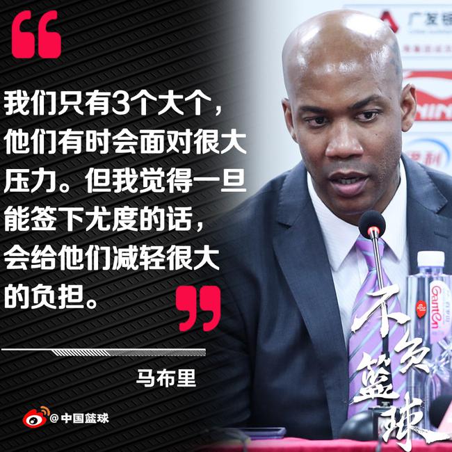 北京时间1月25日,CBA常规赛第34轮,北控100-93击败新疆。赛后,北控主帅马布里和球员代表孙桐林参加了赛后新闻发布会。马布里表示,如果尤度能够来到北控,球队的内线压力会小很多。