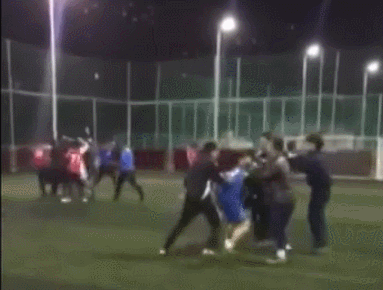 虽然业余球场“战事”频发,但如上这般“兵戎相见”,真正动了“家伙”的其实也还算少数,更多的是直接在拳脚上分出了高低。