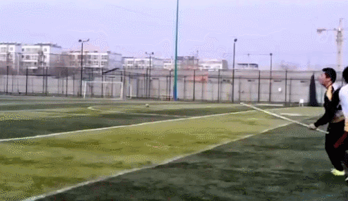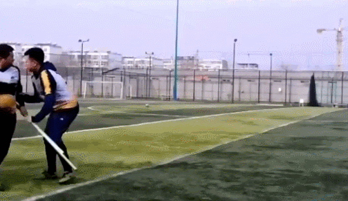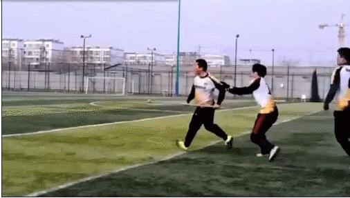 但只见画面一转,这头黄方一员“猛将”冲入画面,虽然没有顶盔掼甲,但其双手持两条长棍,甩开队友的阻拦冲入球场,向“敌方”杀去,虽然最终被队友拦下,那也颇有“虽千万人吾往矣”的架势。