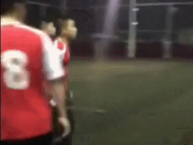 随后视频时间指向比赛第28分钟,橙队球员走向裁判从其身后一巴掌打向对方的后脑勺,裁判员缓缓地倒在场地上。这样的偷袭裁判老同志,哪怕放诸于“球场暴力”范围内也多少有些“不讲武德”了。
