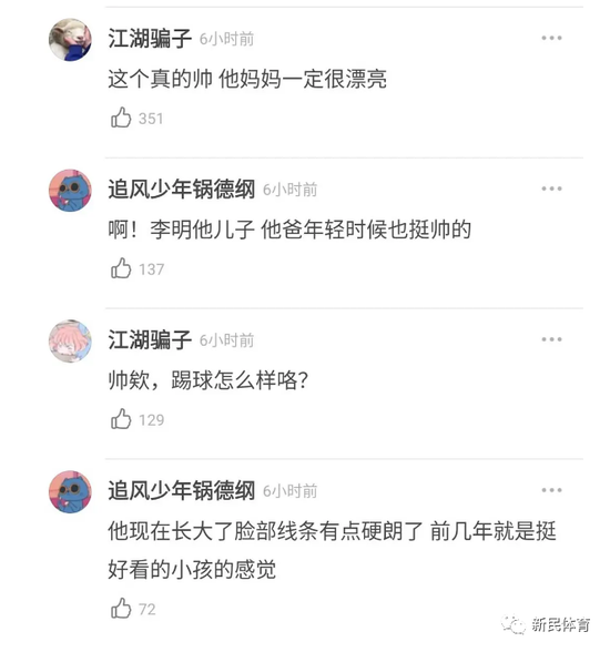 也有不少球迷发现,李嗣镕是前国脚李明的儿子,“他爸年轻时就很帅,不知道他球技怎么样,好歹继承了父亲的颜值。”显然,李嗣镕本身作为球员的能力,是球迷会持续关注的话题。说起来,他能走到今天,离不开父亲李明的关爱和鞭策。