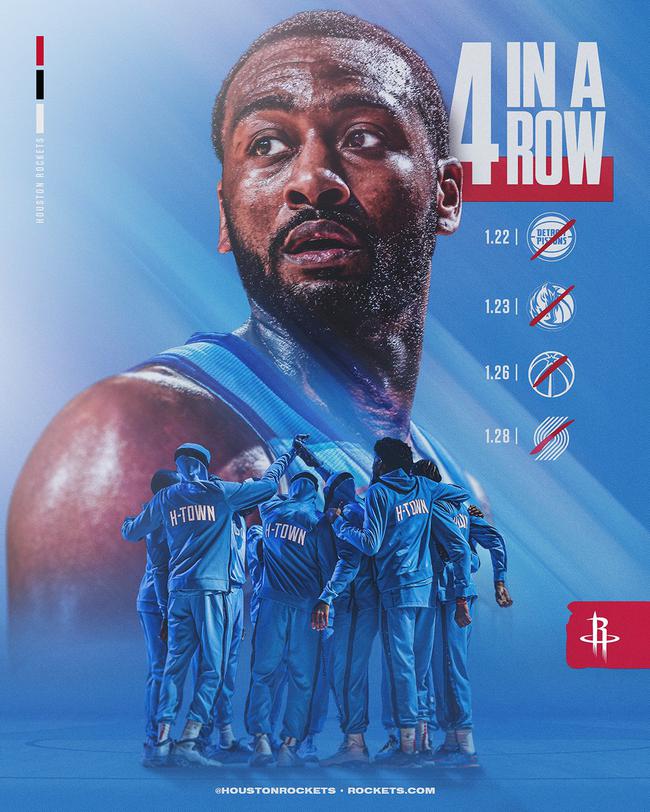 北京时间1月29日,火箭在主场以104-101逆转战胜开拓者,取得4连胜。
