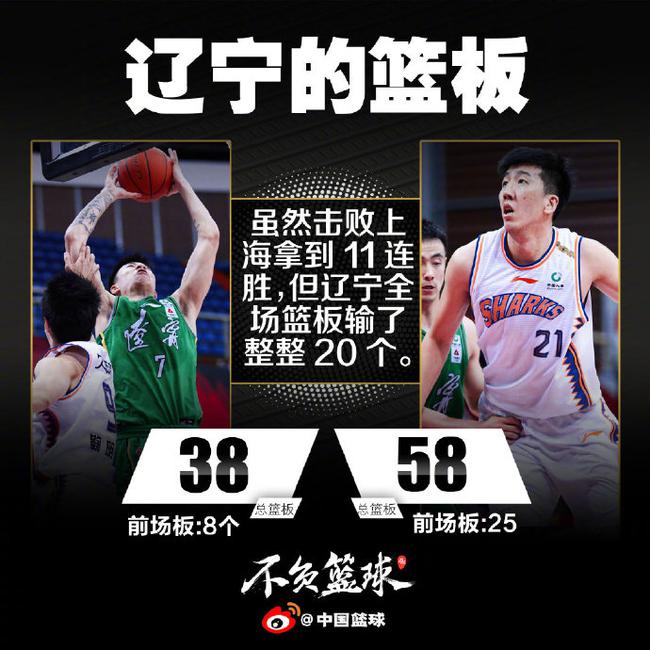 辽宁全队则是拿到38个篮板,前场篮板仅有8个。