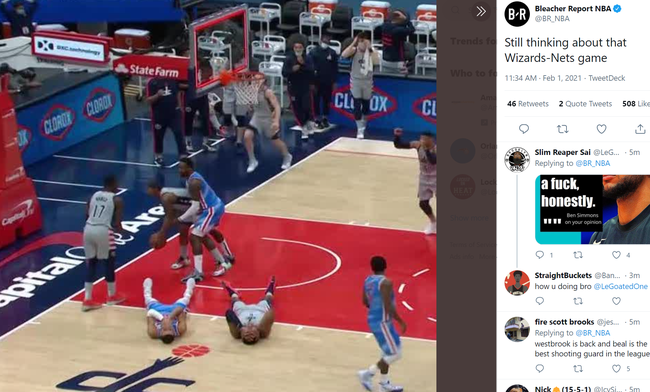 北京时间2月1日,布鲁克林篮网以149-146险胜华盛顿奇才。在比赛最后时刻,卡巴罗上篮不中,随后,他与威少一同捂脸倒地,当时裁判吹罚篮网进攻犯规。