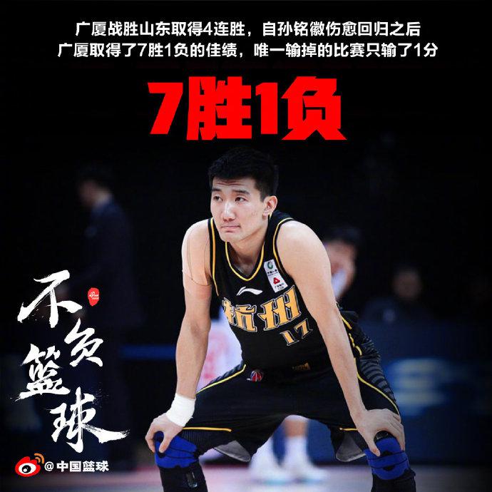 浙江广厦重回正轨,也许和同样回归的孙铭徽有着不小的联系。截至本场比赛,孙铭徽复出的8场比赛中,尚没有彻底找回最佳状态的孙铭徽,就已经帮助浙江广厦取得了7胜1负的战绩,而且仅有的一场失败,还是1分不敌吉林男篮。