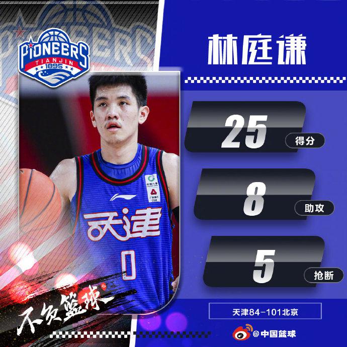 第四节还剩5分多钟结束时,已经胜券在握的北京男篮不得不又“额外”叫了一次暂停,这一次,打停北京男篮的就是林庭谦。但是,暂停过后的北京男篮,依然拿林庭谦毫无办法,此后又连投带罚拿到4分的林庭谦,凭借在第四节又攻下的9分,最终拿到了全场最高的25分,从这个角度看,林庭谦仿佛是天津男篮最后一个放弃比赛的球员。