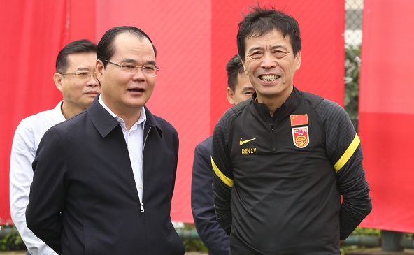 上午,中国足球协会主席陈戌源还与海南省旅游和文化广电体育厅党组书记林光强一起到训练场看望队伍。林光强受海南省委书记沈晓明委托,向集训中的国家队队员致以节日问候,并表示,海南将继续为国家队集训做好保障工作,希望海南能成为国家队取得好成绩的福地。
