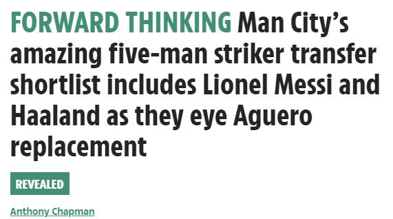 曼城预计会在今年夏天引进新前锋,《太阳报》列出了一份五人候选名单。