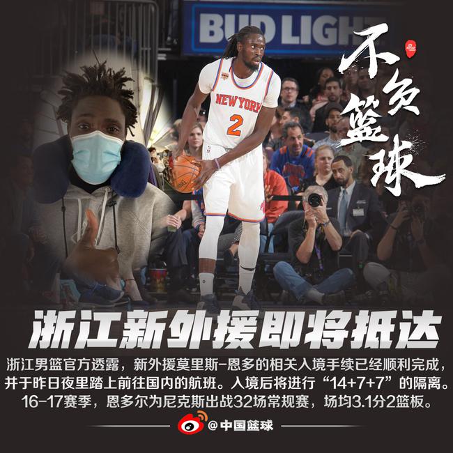 北京时间2月21日,浙江男篮官方公众号透露了球队新外援莫里斯-恩多的最新进展,他已经踏上前往国内的航班。
