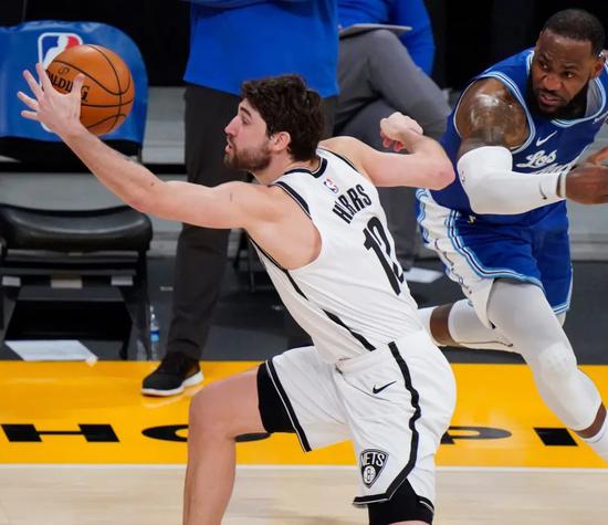 其中面对湖人的比赛,杜兰特、浓眉缺席,欧文和哈登大战詹姆斯,乔哈里斯成功“抢戏”,他全场10中7,三分7中6,超高效拿下21分5篮板。第二节湖人不断追分时,正是哈里斯连中三记三分,帮助篮网稳住优势。
