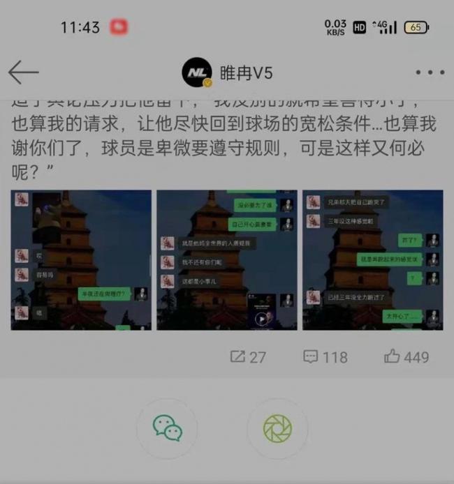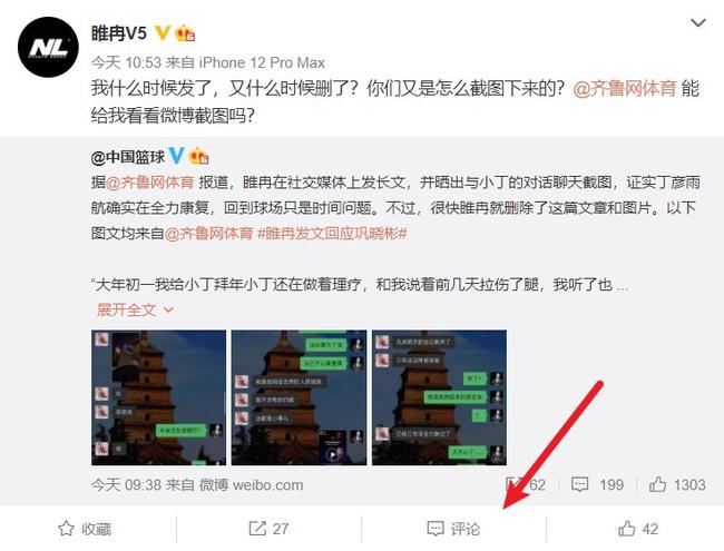 睢冉转发了这篇报道,并写道:“我什么时候发了,又什么时候删了?你们又是怎么截图下来的?@齐鲁网体育 能给我看看微博截图吗?”