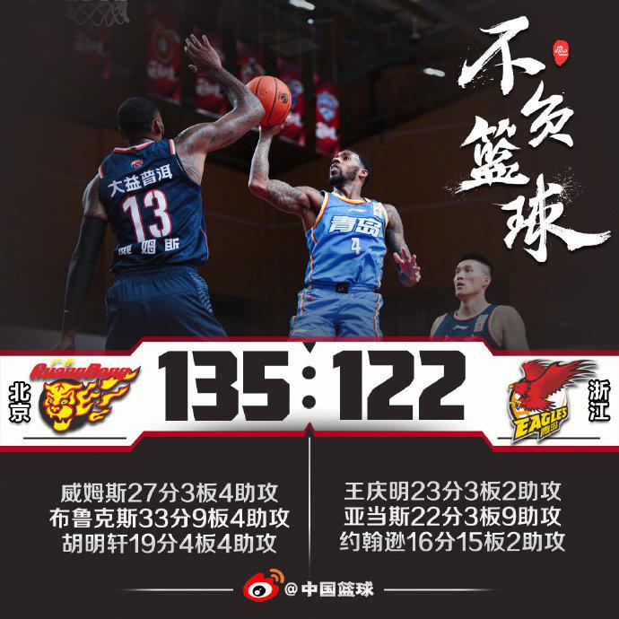 广东:威姆斯27分、周鹏14分、赵睿17分、布鲁克斯33分9篮板4助攻、胡明轩19分。青岛:刘传兴12分13篮板、王庆明23分、亚当斯22分9助攻、杨金蒙10分、张骋宇17分、林韦翰10分、约翰逊16分15篮板。