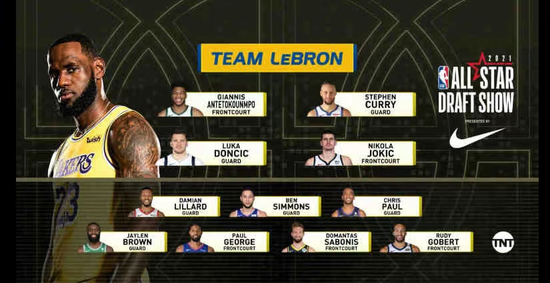 至于原因为何,我们先看看看最终的球队名单:詹姆斯队首发:老詹、字母哥、库里、东契奇、约基奇。