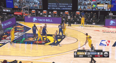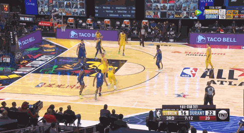 下半场利拉德顶替詹姆斯首发,杜兰特队开场攻势凶猛,连续打进,但詹姆斯队这边在字母哥的带领下也进行了回应,字母哥都投进三分了,你说詹姆斯队能落后嘛?三节结束杜兰特队125-146落后进入末节。