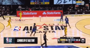 之后利拉德、库里都投进中场位置(43英尺)的三分球!詹姆斯队最后4分钟打出27-8收尾。第二节轰下惊人的60分!这哥俩的射程真的恐怖啊。