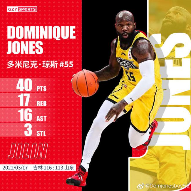 北京时间3月20日,吉林队外援多米尼克-琼斯在社交媒体晒自己对阵山东比赛时高光数据,表示自己很努力应该得到他要求的一切。