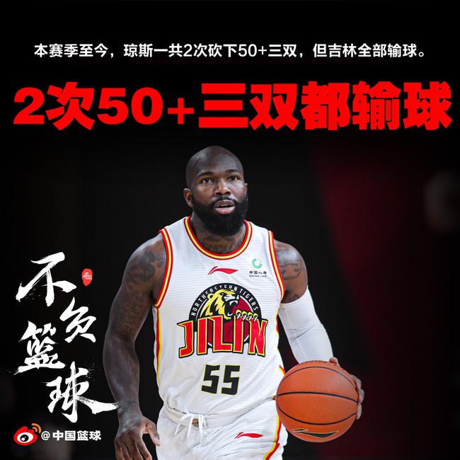 本赛季至今,琼斯2次50+三双吉林全部输球,而另外,他一共还砍下了14次三双,吉林的战绩仅为6胜8负。