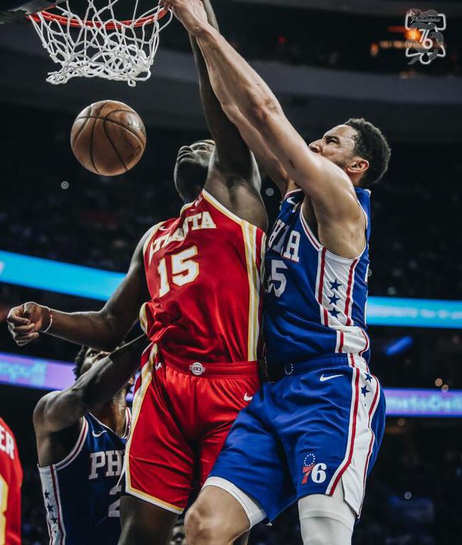 首节开场塞思-库里、科尔克马兹都命中三分球,费城的进攻空间很大,这让老鹰不太敢去低位包夹乔尔-恩比德,大帝在三秒区的进攻就十分轻松,单吃卡佩拉、单吃科林斯、单吃加里纳利、各种强吃外线单节8中8,拿下17分2篮板1助攻1盖帽,一扫上一场20中4只有17分的阴霾,单节已经完成了上一场整场的分数。