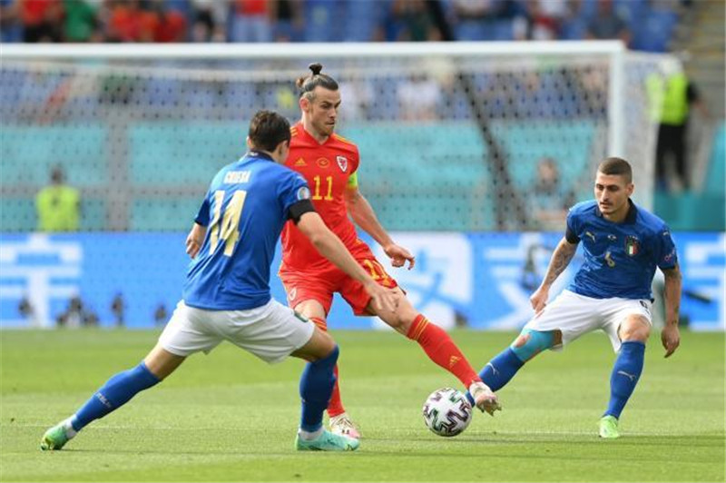 比起意大利队轮换了全部锋线首发,威尔士只不过换掉了前两场兢兢业业的穆尔。贝尔踢得更类似古典前腰,拉姆塞适度靠前,丹尼尔·詹姆斯则在前面冲杀。至于防守端,威尔士仍立足发挥正面防守的优势,阻断意大利人的连续传递推进。比赛的前半小时,防守端众志成城、进攻端靠定位球偶尔制造威胁的威尔士,看似还不算被动,然而面对意大利演练多时的定位球,猝不及防的威尔士人,只能坐视佩西纳成为亚特兰大队史进球最多的国家队球员。