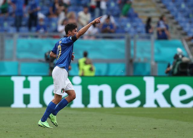6月20日,意大利队球员在佩西纳在比赛中庆祝进球。 新华社记者 程婷婷 摄