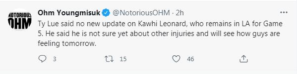 到目前快船官方都没有曝出科怀-莱昂纳德的伤势究竟是膝盖扭伤还是十字韧带撕裂,泰伦卢在采访中也只是说小卡会继续留在洛杉矶治疗不会前往客场,不过就目前来看小卡的伤势大概率是十字韧带轻微撕裂,此前克里斯-海恩斯就分析小卡的伤势大概率是十字韧带撕裂。