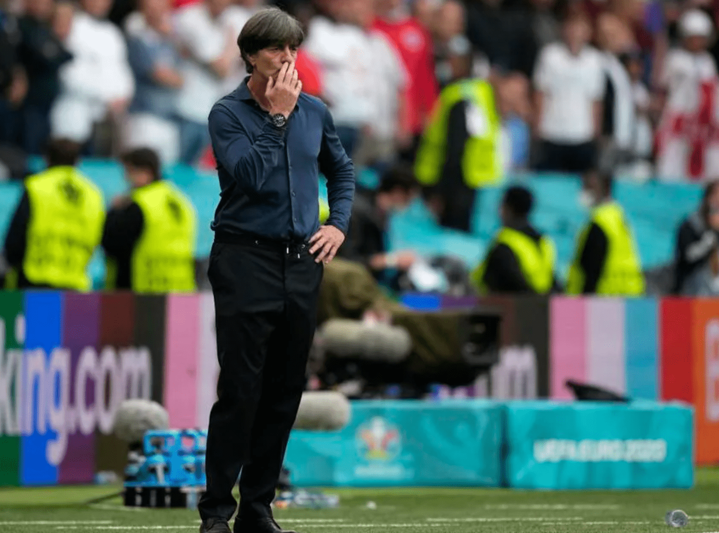 在温布利球场,随着英德大战的比分被定格在了0-2,德国队黯然出局,止步十六强,这意味着德国队的勒夫时代落下了帷幕,从2006年世界杯后执掌德国队帅印开始,勒夫在德国队已经执教了十五年之久,遗憾的是,曾带领德国队重返巅峰的他,在最近两届大赛都是带队表现糟糕,这样的离别令人唏嘘不已。