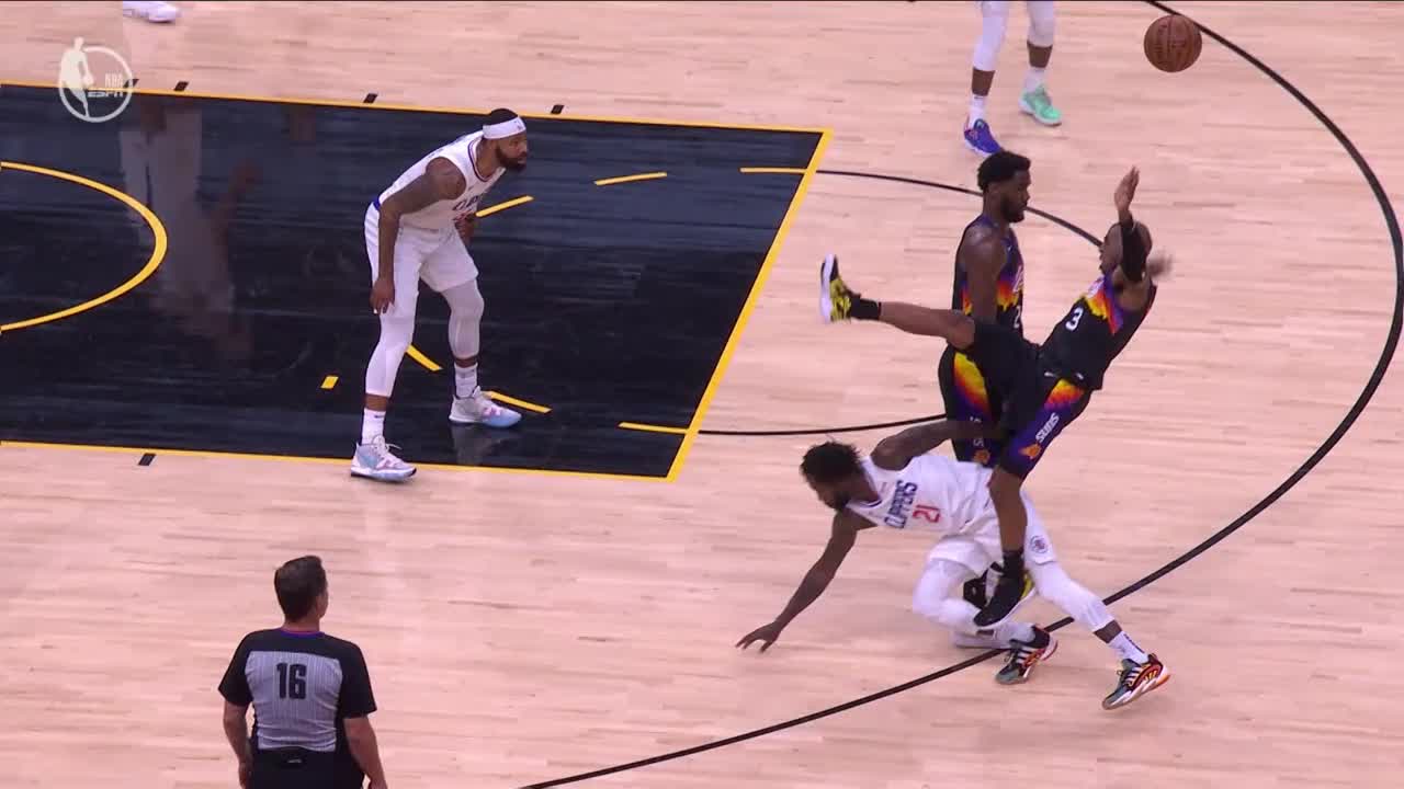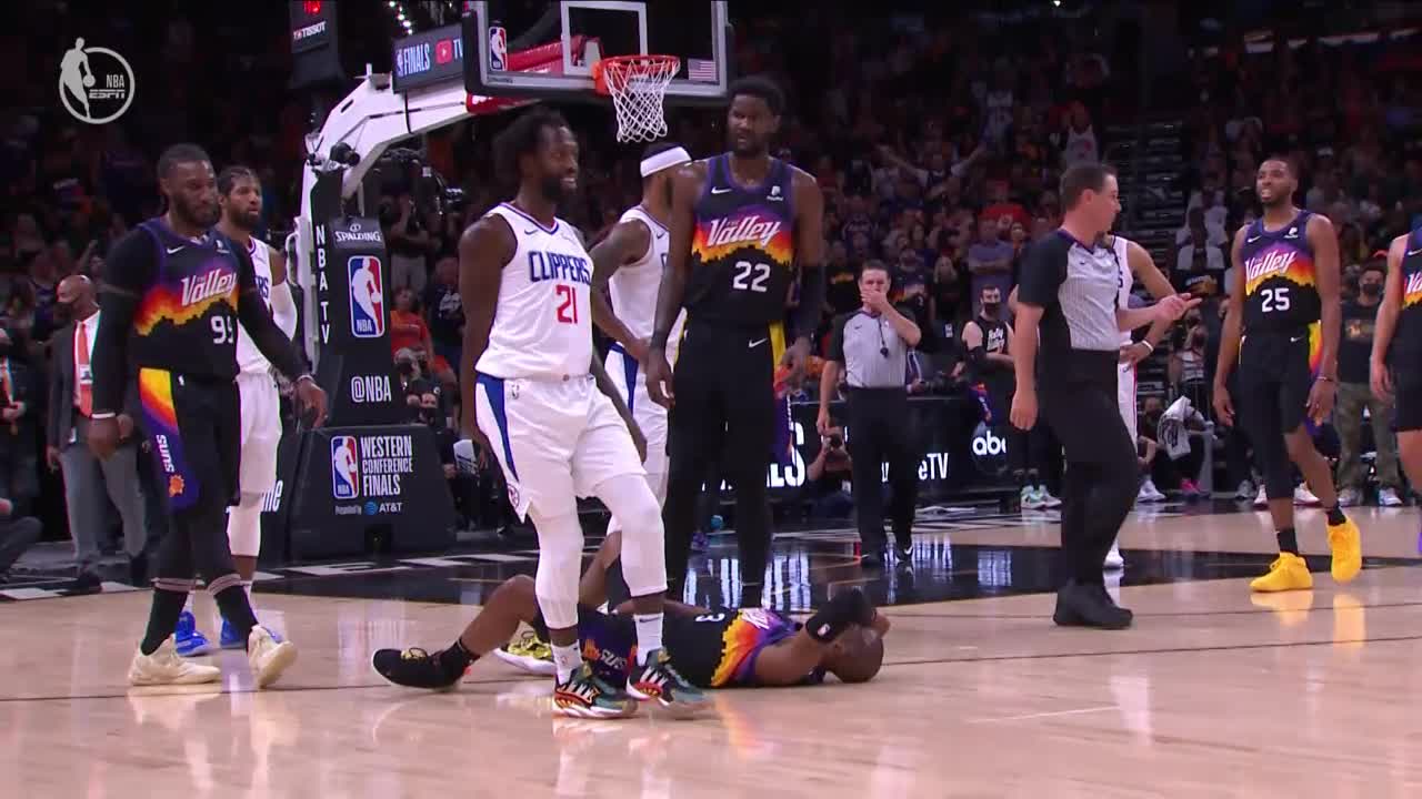 北京时间6月29日,西决G5在菲尼克斯进行,第三节中段,场上发生了不和谐的一幕。