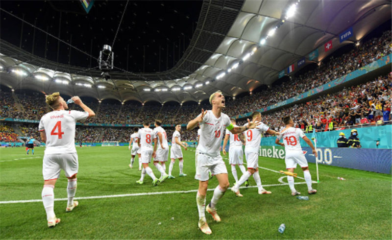 对阵法国的比赛,瑞士表现得非常的顽强,到了比赛临近结束的时候,瑞士还是1-3落后。就在所有人都认为法国即将晋级下一轮的时候,瑞士开启了反扑模式,第81分钟,瑞士打入一球,常规时间最后1分钟,瑞士完成绝平。进入加时之后,瑞士可谓是越战越中,顽强的将比赛拖入了点球大战。点球大战前5轮,瑞士全部罚中。而法国最后一个出场的姆巴佩却没有顶住压力,一脚射门被索默扑了出来。最终,瑞士淘汰了强大的法国,爆出了本届杯赛中一大冷门。