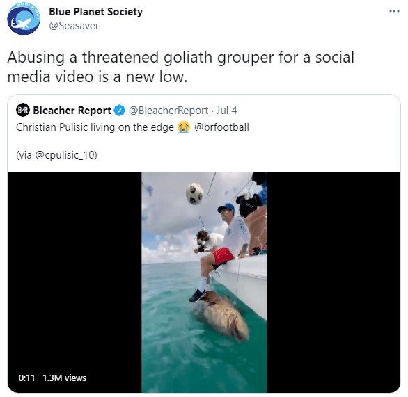 北京时间7月5日消息,一个名为Blue Planet Society的动物保护组织日前炮轰了切尔西球员普利西奇,理由是他录制了一条涉嫌虐待受保护鱼类的视频。