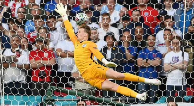 但显然,2021并不是1992。残酷的现实是丹麦的半决赛对手远比他们强大,即便英格兰队内有人可能并不在状态。在反应慢了半步,没能摸到达姆斯高下坠速度极快的任意球射门之前,三狮门将皮克福德就有过一次开大脚直接被丹麦前锋拦断。在0比1之后,他还有过一次相似的失误。如此表现也让皮克福德的“纪录之夜”略显尴尬,虽然他以721分钟不丢球的时间堪堪超过720分钟的传奇门神班克斯,刷新了英格兰队史,但失误没有酿成大错还是得靠后卫队友的帮衬。