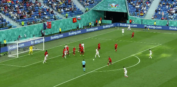 不得不说,西班牙实在太顺了了。开场仅8分钟,斗牛士获得角球,瑞士解围不力,球落到禁区外。